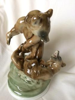 316. Zsolnay verekedő medvék, Markup Béla, 30 cm
