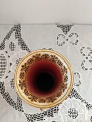 | Rövid leírás: | Porcelán fajansz. Zsolnay váza aprólékosan mintázott perzsa? minta, szögletes fülekkel. Alján jelzett, kettős körben , Zsolnay Pécs. |