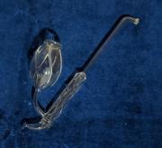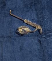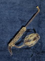 | Rövid leírás: | Üveg pipa, vagy lopó, vagy italos. Tulipán fejet formázó, csavart minta. Formába fújt, vagy öntött. Jelölés nélkül. |
