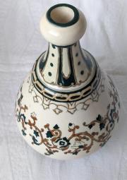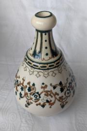 | Cím: | 579. Zsolnay butella, arab-mór mintás, családi címeres, 1880 körüli, 18 cm-es |