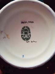 | Jelölés (mi): | mázra nyomott zöld öttornyú pecsét, Zsolnay Pécs Hungary Hand Painted, 3937/ 007 |