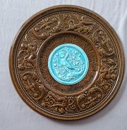 | Rövid leírás: | Majolika – fajansz fali dísztányér, külső körben barna alapon bachanália jelenetek, belül kék alapon puttók. 2 db. Alján jelzett , Schütz Cilli jelzés. |