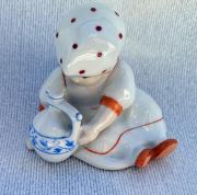 717. Zsolnay kislány korsóval figurális szobor, 9 cm
