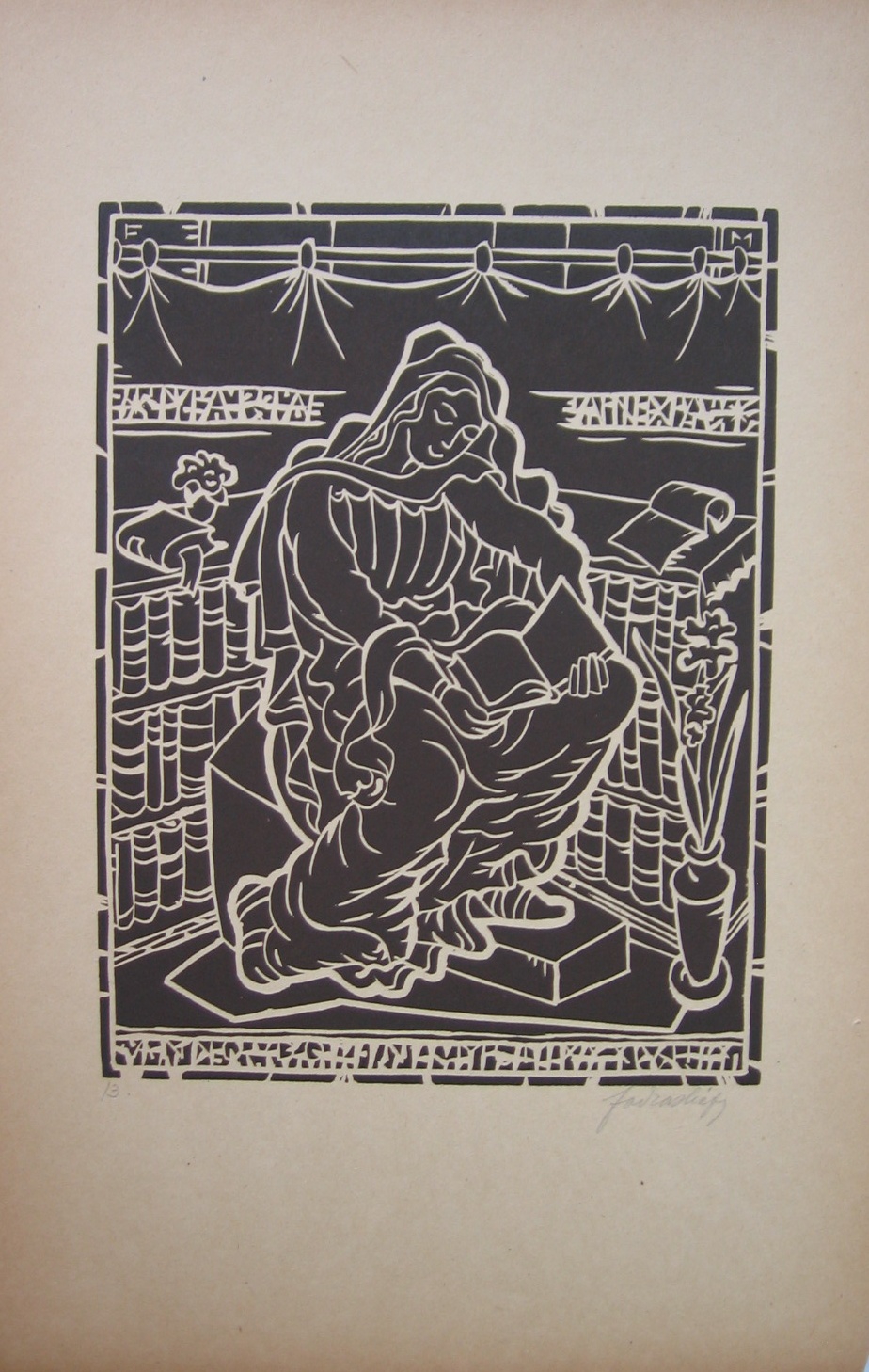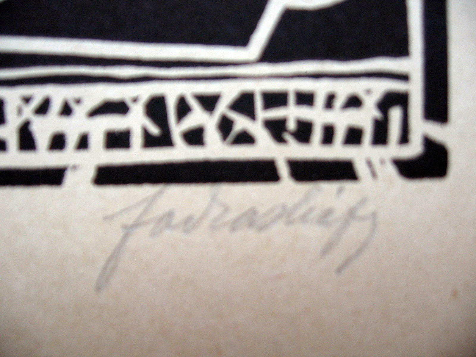 Farkasházy Miklós, Linómetszet, papír , 31x24, Jelölés: jl