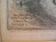 | Rövid leírás: | Szentiványi Lajos, színezett rézkarc , 28x34, Jelölés: jl, karcon: bl |