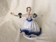 200. Crown Regal porcelán szobor, barokk ruhás táncos lány, 18 cm