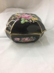 204. Zsolnay bonbonier, ékszertartó, fekete virág mintás 10cm-es