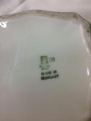 | Jelölés (mi): | mázba nyomott zöld öttornyú pecsét, Zsolnay Pécs, Made in Hungary, 50-es jelzés |