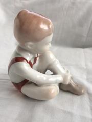 | Rövid leírás: | Porcelán. Cipőt fűző ülő kisfiú kompozíció. Alján jelzett, mázra nyomott, Budapest római sas, Aquincum felirat. |