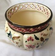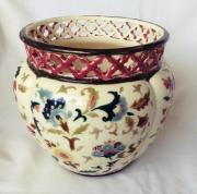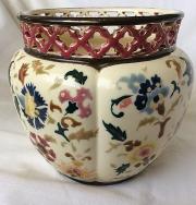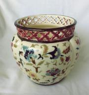 299. Zsolnay kaspó, perzsa mintás áttört peremű 15 cm-es