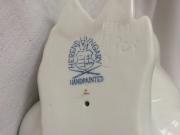 | Rövid leírás: | Porcelán. Fehér ülő nyúl, rózsaszín füllel. Alján jelzett, mázra nyomott HEREND, Hungary, kék címer pecsét, mázba is benyomva. |