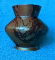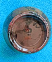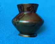 | Rövid leírás: | Porcelán fajansz. Zöldes aranyos, kékes színű eozin mázas öblös váza. Alján jelzett, mázra nyomott öttemplom pecsét, a bélyegző alatt Made in Hungary felírás - 1925. |