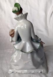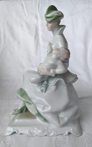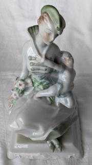| Rövid leírás: | Porcelán. Fehér alapmázon zöld-türkiz színes festés, puttót tartó dáma szobor. Alján jelzett, mázra nyomott Herend Hungary régi címer, handpainted, masszába benyomva Herend 5759 formaszám. |