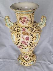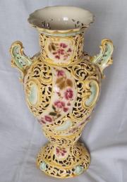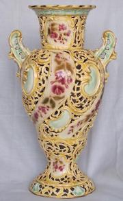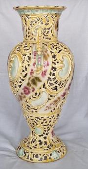 Kulcsszavak: | Zsolnay váza, áttört virágmintás, 1878-as címer, 35 cm-es |