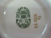 | Jelölés (mi): | Alján jelzett, mázba nyomott öttornyú pecsét, Zsolnay Hungary, Pécs, hand painte |