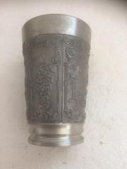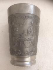 | Rövid leírás: | Régi, nagyméretű ón sörös pohár! Söröző vadászok komló - gabona – szőlőfürt motívumok. Súly: kb 320 gr. |