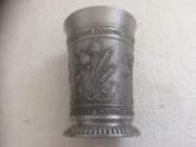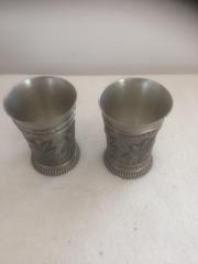 | Rövid leírás: | Régi ón sörös kelyhek, kupák. Domborműves ón poharak komló és gabona motívumokkal 2 db. Alján jelzett, minőség és gyári jel |