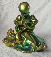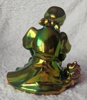 | Rövid leírás: | Porcelán fajansz. Zöldes aranyos, kékes színű eozin mázas Juliska libát tömő lány szobor. Alján jelzett, mázra nyomott öttornyú pecsét, Zsolnay Hungary, Pécs, hand painted felírás jelzés,alatta MADE IN HUNGARY látható |